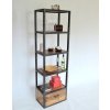 Kovový policový regál se šuplíkem. Celokovová konstrukce je vyrobena z ocelového profilu 30x30 mm. Police a šuplík jsou vyrobeny z masivní spárovky o síle 20 mm. Šuplík je doplněn o stylovou kovanou úchytku. Masivní spárovka je ručně drásána ocelovým kartáčem a mořena do různých barev dle vzorníku. Finální úprava výrobku je provedena velice kvalitním bezbarvým lakem se saténovým povrchem.